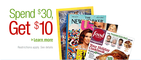 1. Spend at least $30 in the Amazon.com Magazine Store between December 5-11, 2010.