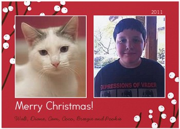 /Shutterfly has an awesome selection of holiday cards. Here is the card I created for 2011- my son Cam and our new kitten Pookie!
