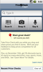 Amazon: Free Amazon Price Check App + Discount on Dec.10, 2011