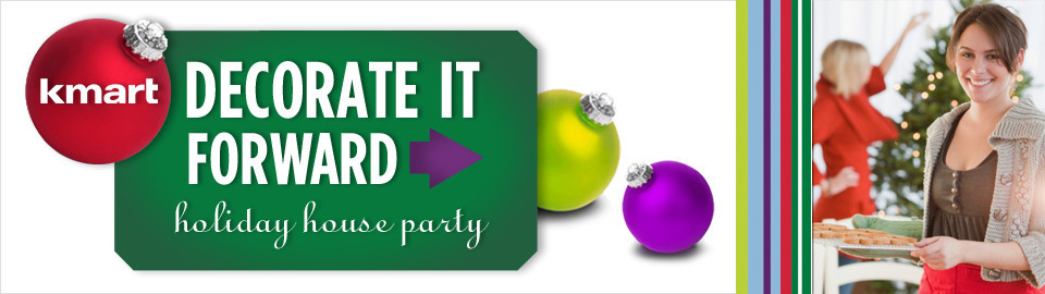 The holidays are just around the corner and this year you’re going to learn to Decorate It Forward with Kmart®. At your Kmart® Decorate It Forward Holiday House Party, you and your guests will get great decorating and recipe ideas from the biggest holiday superstore and one-stop shop — Kmart® and their brands like Sandra Lee and Jaclyn Smith. You’ll also discover the joy of helping others and spread holiday cheer to friends and family.