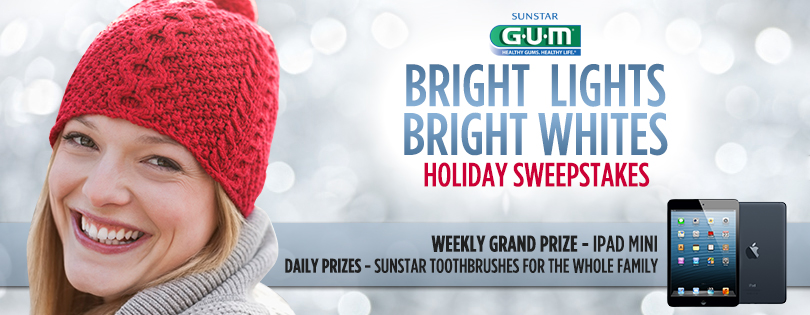 Through December 21st, go to the Sunstar GUM Oral Care Products Facebook page, like them and click on the Bright Lights Bright Whites tab to enter the Sunstar GUM Bright Lights Bright Whites Holiday Sweepstakes. You’ll then be entered to win the Daily Prize Drawing.
