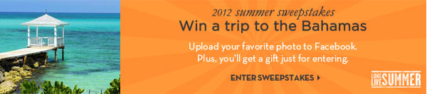Shutterfly just released a new sweeps! Win a trip for four to The Bahamas and a professional photo shoot so you’ll remember your vacation forever. All you need to do is upload your favorite photo and caption based on the theme of the week. Get a gift from Shutterfly just for entering! You can enter at any point during the 5-week sweepstakes period.
