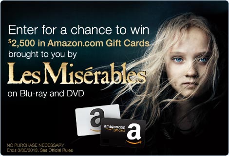 Amazon is giving away 1 of 5 $100.00 Amazon.com Gift Cards or the Grand Prize of $2,500 in Amazon.com Gift Cards!