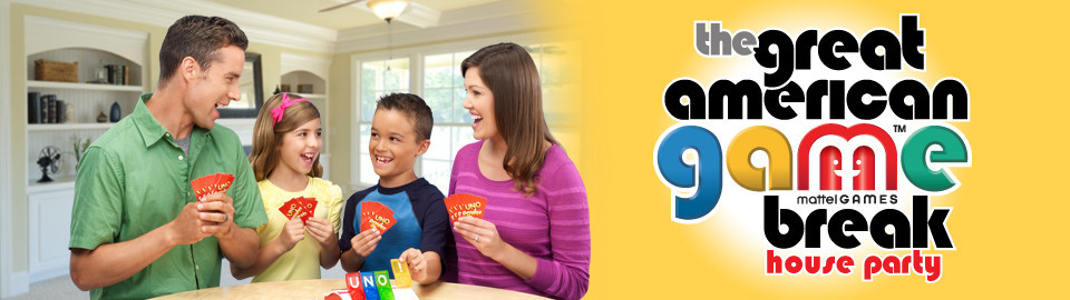 Make family time more fun and Take a Game Break with Mattel® and House Party. At the Mattel® Great American Game Break House Party, you’ll spend quality time with family and friends to play popular Mattel® games, enjoy party snacks and reconnect with each other. Whether you play for fun, for competition or just for laughs, when you take time out and play games together, everybody wins. So get ready for the Mattel® Great American Game Break — because sometimes we all need to stop and just play.