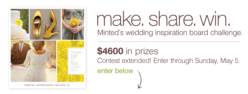 $1600 to spend on Minted. Editors' Pick for most beautiful Board to be announced May 1st, 2013