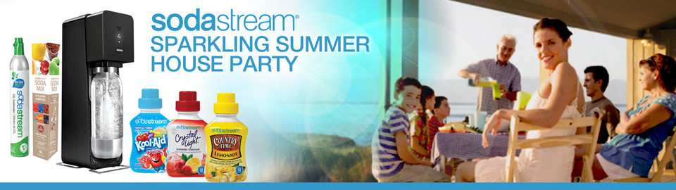 Add some sparkle to your summer and take the party outside with a SodaStream Sparkling Summer House Party. Everyone will be wowed by your new SodaStream home soda maker as you transform water into fresh, fizzy sparkling water and soda in under 30 seconds. With flavors like Country Time® Lemonade, Crystal Light® Raspberry Lemonade and Kool-Aid® Tropical Punch†, you’ll create a sparkling new twist on everyone’s summertime favorites. And with no bottles and cans to lug, store and dispose of, you’ll enjoy the freshness and convenience of homemade soda and protect the environment at the same time.