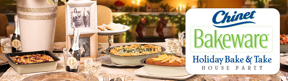 At your Chinet Bakeware® Holiday Bake & Take House Party, everyone will enjoy a stress-free, mess-free evening of fun as you swap recipes and sample delicious holiday dishes made in Chinet Bakeware pans. They’re the only disposable baking pans that let you take your food from oven to table to freezer to microwave, all in one attractive non-stick pan. Show your friends how easy and convenient baking will be this holiday season with Chinet Bakeware pans.