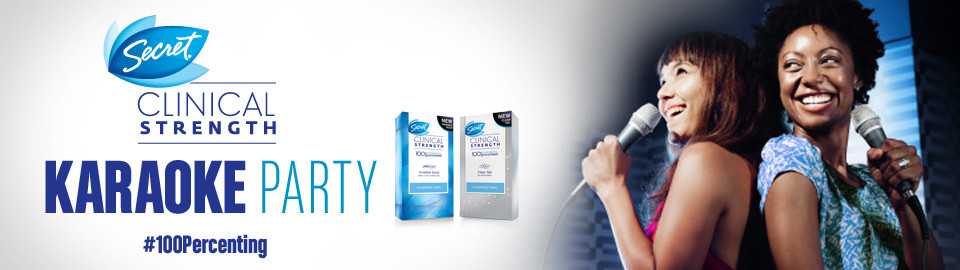 Only Secret Clinical Strength can give you 100% Odor Protection. Now you can be the first to try Secret’s 100% Odor Protection in new Secret Clinical Strength Invisible Solid and Clear Gel forms and have a fearless night of singing with your friends.