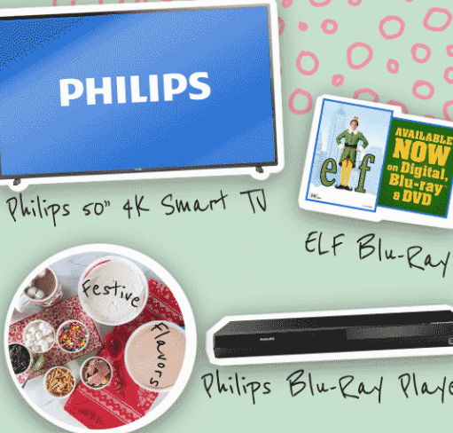 Get your one-time entry in this Carvel’s Movie Night Sweepstakes for a shot at winning an awesome prize pack that includes a Philips 50″ TV, Blu-ray player, Carvel Ice Cream party pack, and more! Plus, 10 runner-ups will score a Blu-ray copy of Elf.