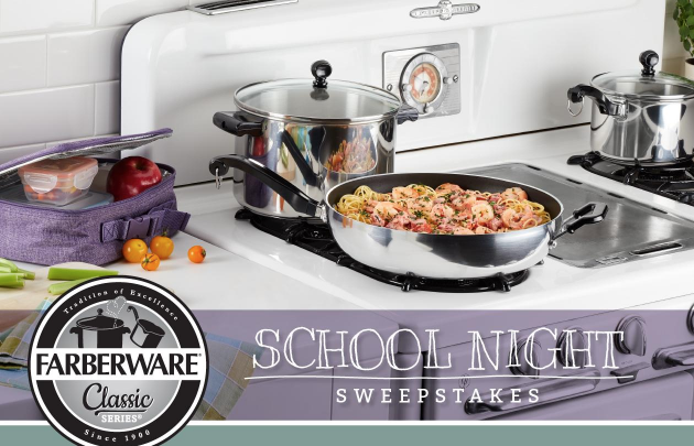 /Enter this Farberware Cookware ‘School Night’ Sweepstakes for a shot at winning 1 of 9 cookware prize packs. Limit one entry per day through September 23rd.