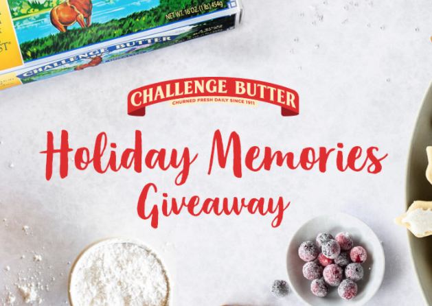 Share a holiday cooking or baking tradition to enter this Challenge Butter ‘Holiday Memories’ Sweepstakes! One lucky grand prize winner will win a $1,000 gift card + prize pack, and 4 first prize winners will get a $250 gift card + prize pack. Ends Dec.16th.