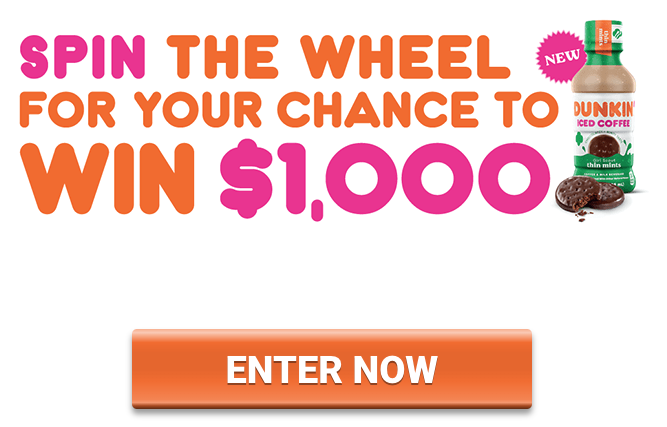Spin the wheel for your chance to win $1,000 from Dunkin’ in their new Dunkin’ Spin Sweepstakes! Ends April 17th.