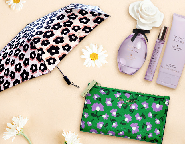 /Enter this new Kate Spade “Showers and Flowers” Sweepstakes to win a prize pack that includes an umbrella, wallet, and fragrance set ($500 value).