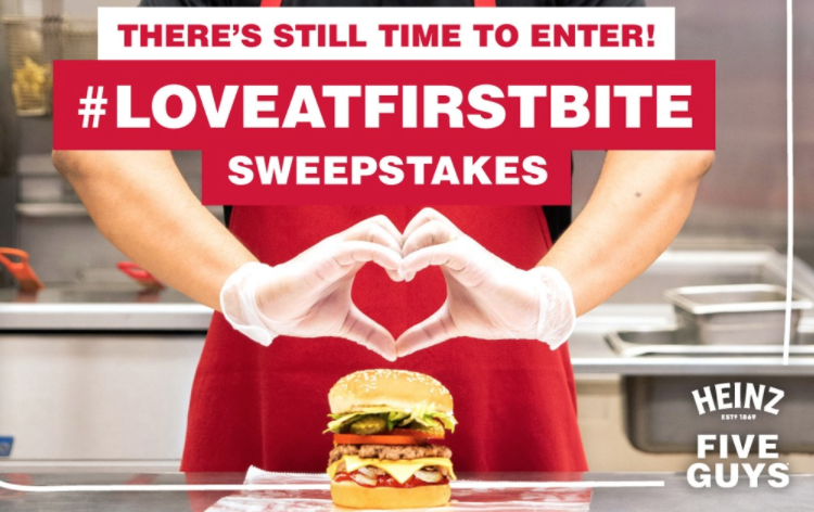 /Enter this new Five Guys “Love at First Bite” Sweepstakes! You could win one of 20 $100 Five Guys gift cards and more! Ends May 31st.