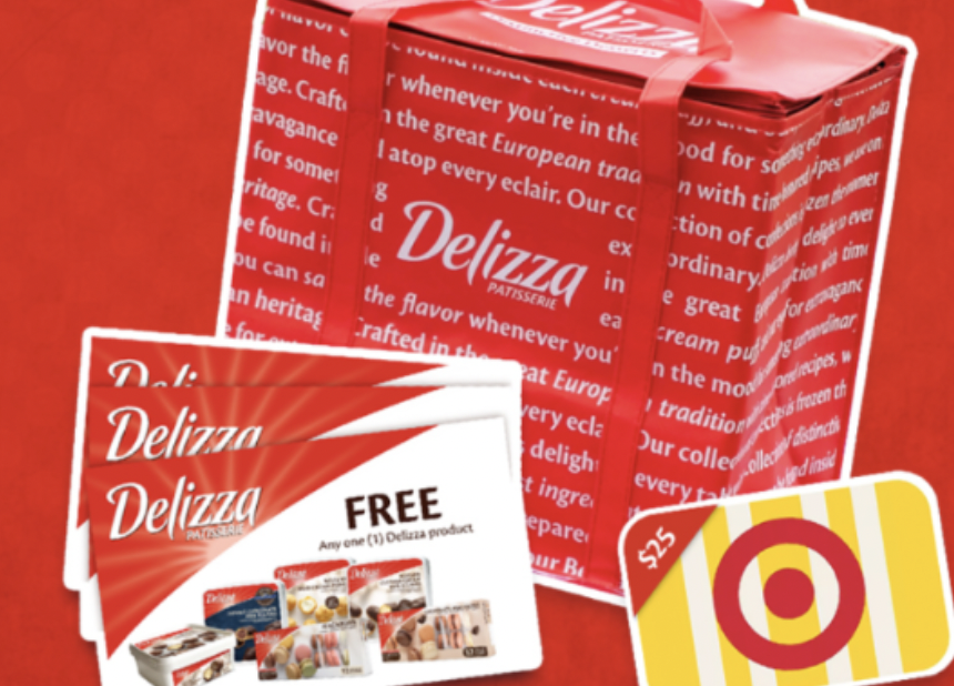 /Enter the Delizza Beat the Heat Sweepstakes to win a Delizza Beat the Heat prize pack, including a Delizza-branded cooler bag, a $25 Target gift card, and three coupons for free Delizza products.