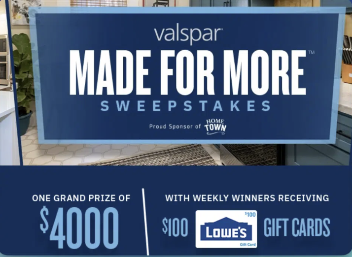 Enter the HGTV Valspar “Made For More” Sweepstakes, giving away 10 total prizes including a $4,000 grand prize!