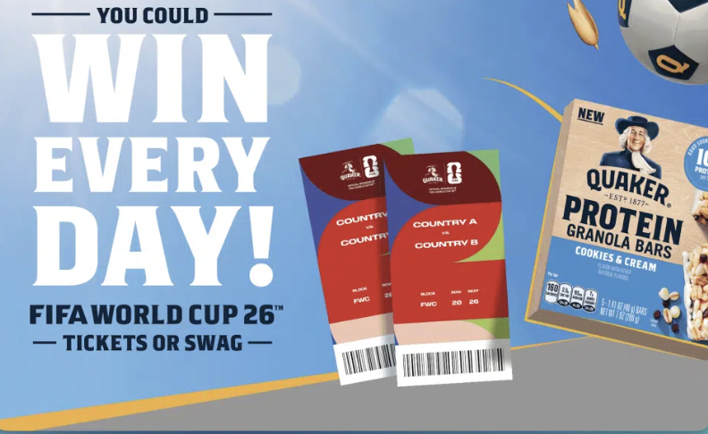 Enter the Quaker “FIFA World Cup 26” Instant Win Game, giving away 1,679 total prizes including a trip to the FIFA World Cup Final and match tickets!
