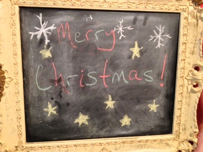 - Take apart a vintage frame (ebay has a great selection) and cut a piece of black board to fit inside (from Home Depot).