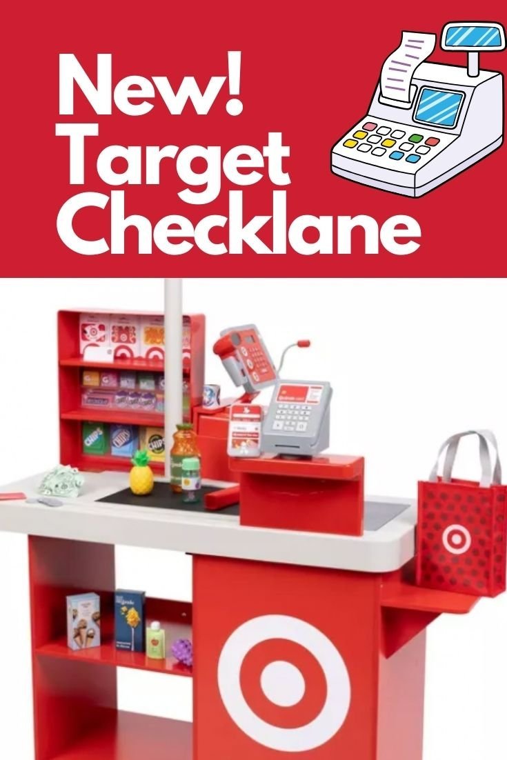 Free-standing wooden Target themed Checklane for pretend shopping with interactive lights & sounds